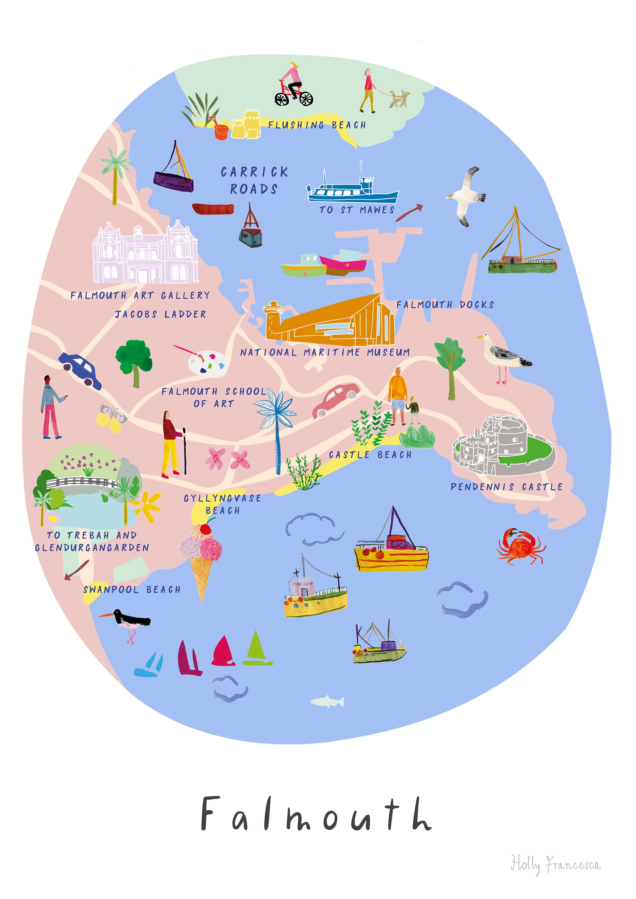 Map of Falmouth, Cornwall Illustrated Art Print City Guide Cornish