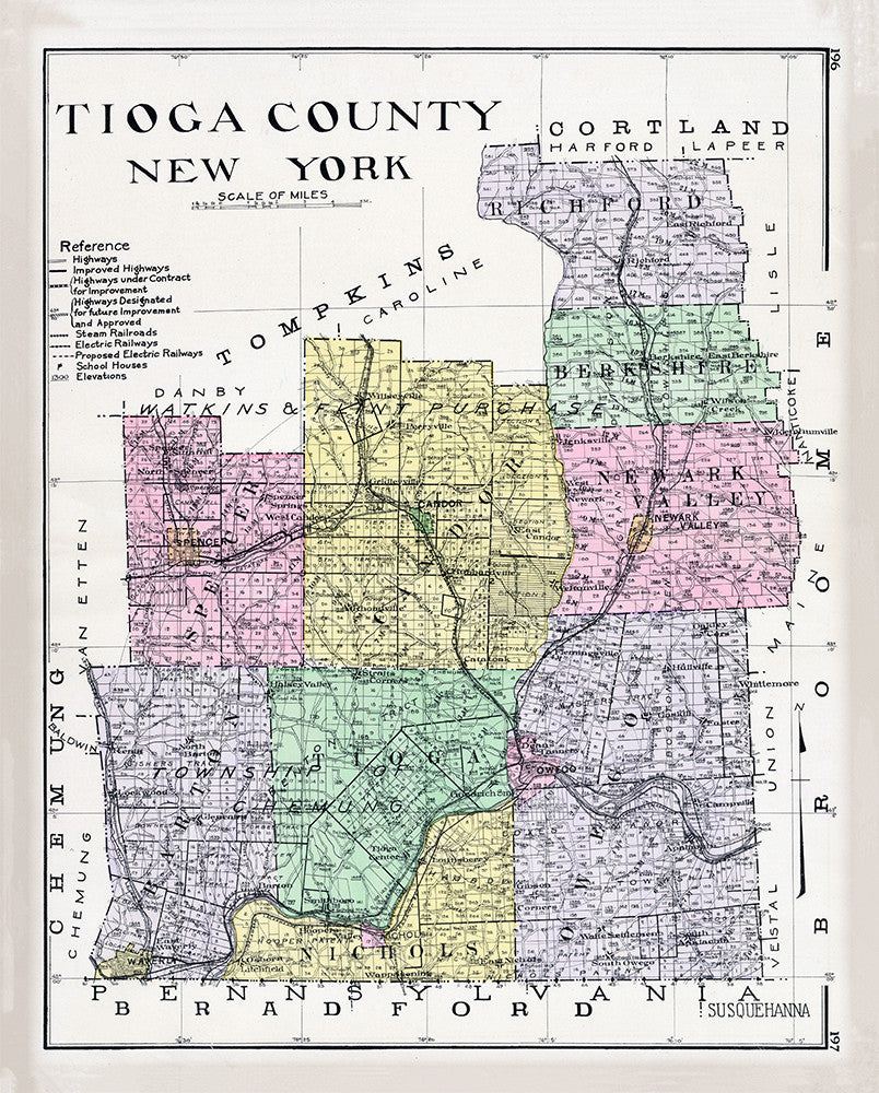 Tioga County, New York 1897 Map by Rand McNally, Owego, Waverly, NY