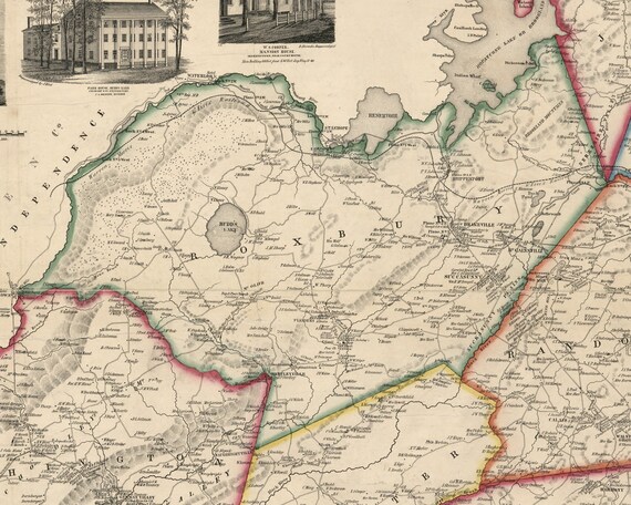 Roxbury 1853 Old Town Map With Homeowner Names Drakeville Budd’s